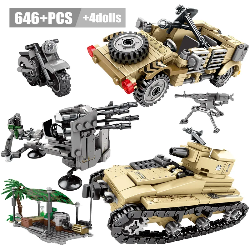City Military Diy Army Truck Building Blocks for Legoingly WW2 Tank Chariot Car Model Soldiers Weap